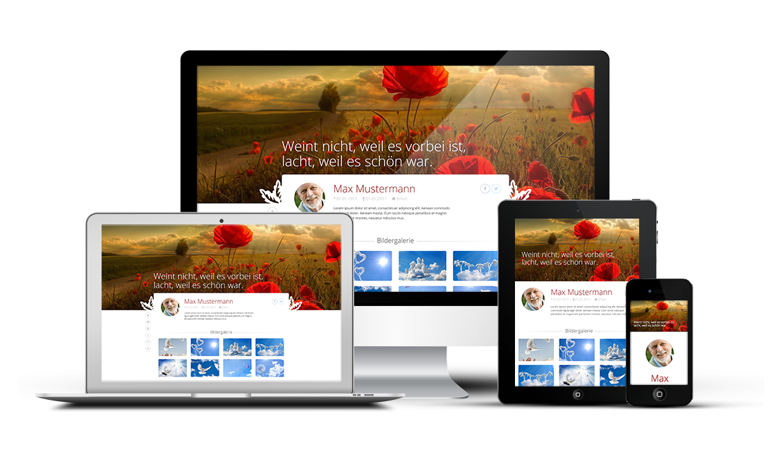Egal ob Sie mit einem Arbeitsplatz-Computer oder einem Smartphone Ihre Gedenkseite betrachten - sie wird immer optimal dargestellt.